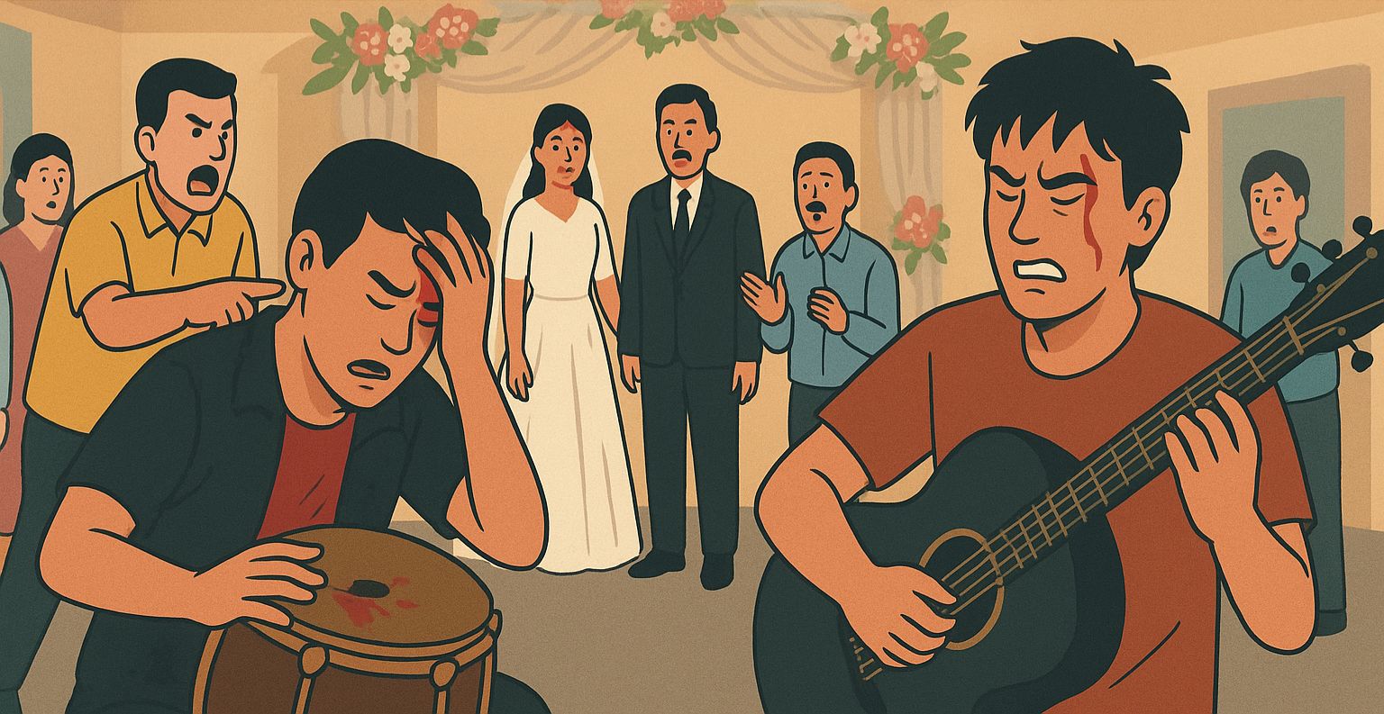 Salah satu musisi pun menjawab bahwa mereka telah memenuhi permintaan tambahan lagu sesuai kesepakatan. Cekcok pun tak terhindarkan dan berujung pada tindak kekerasan.