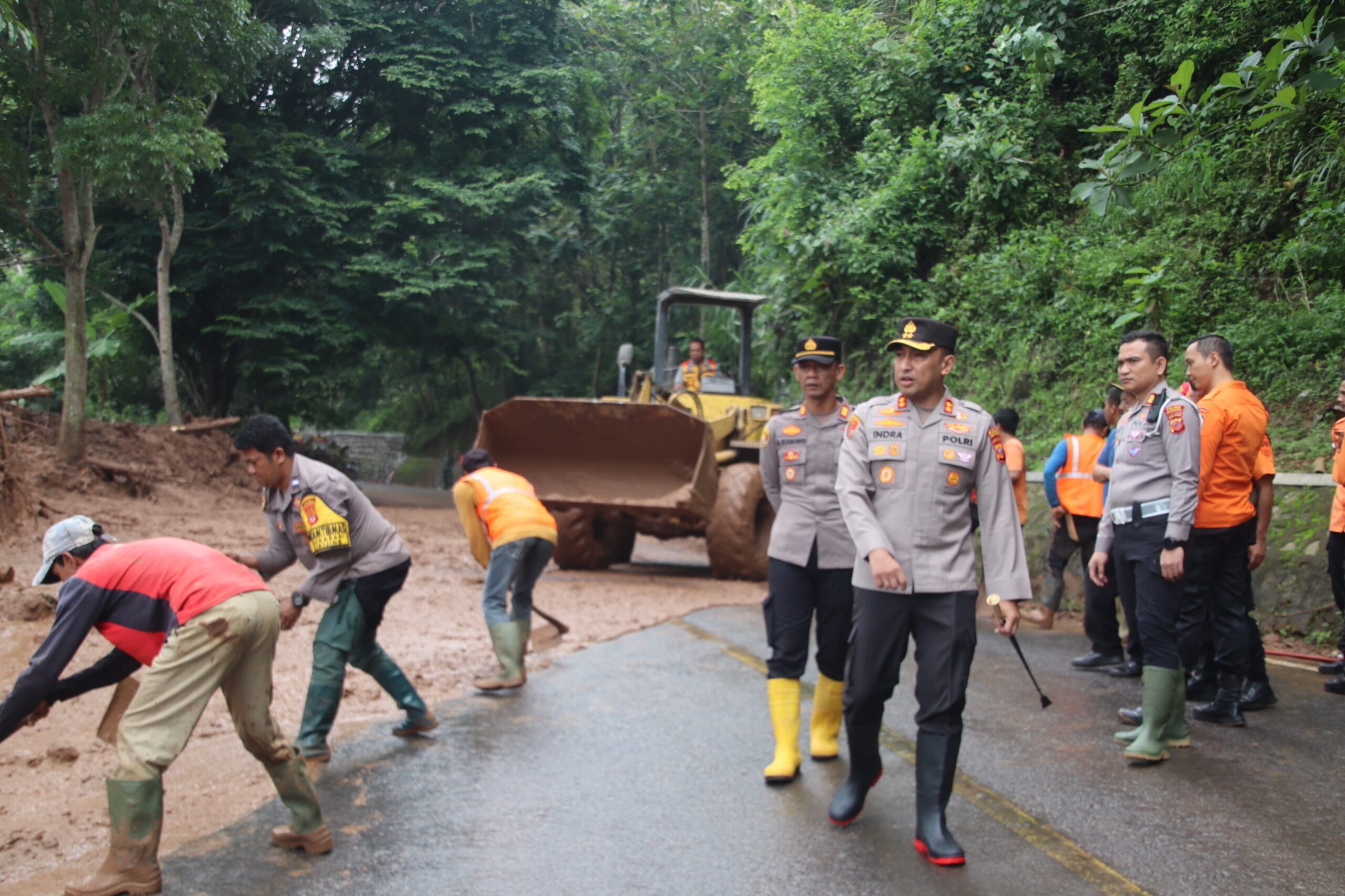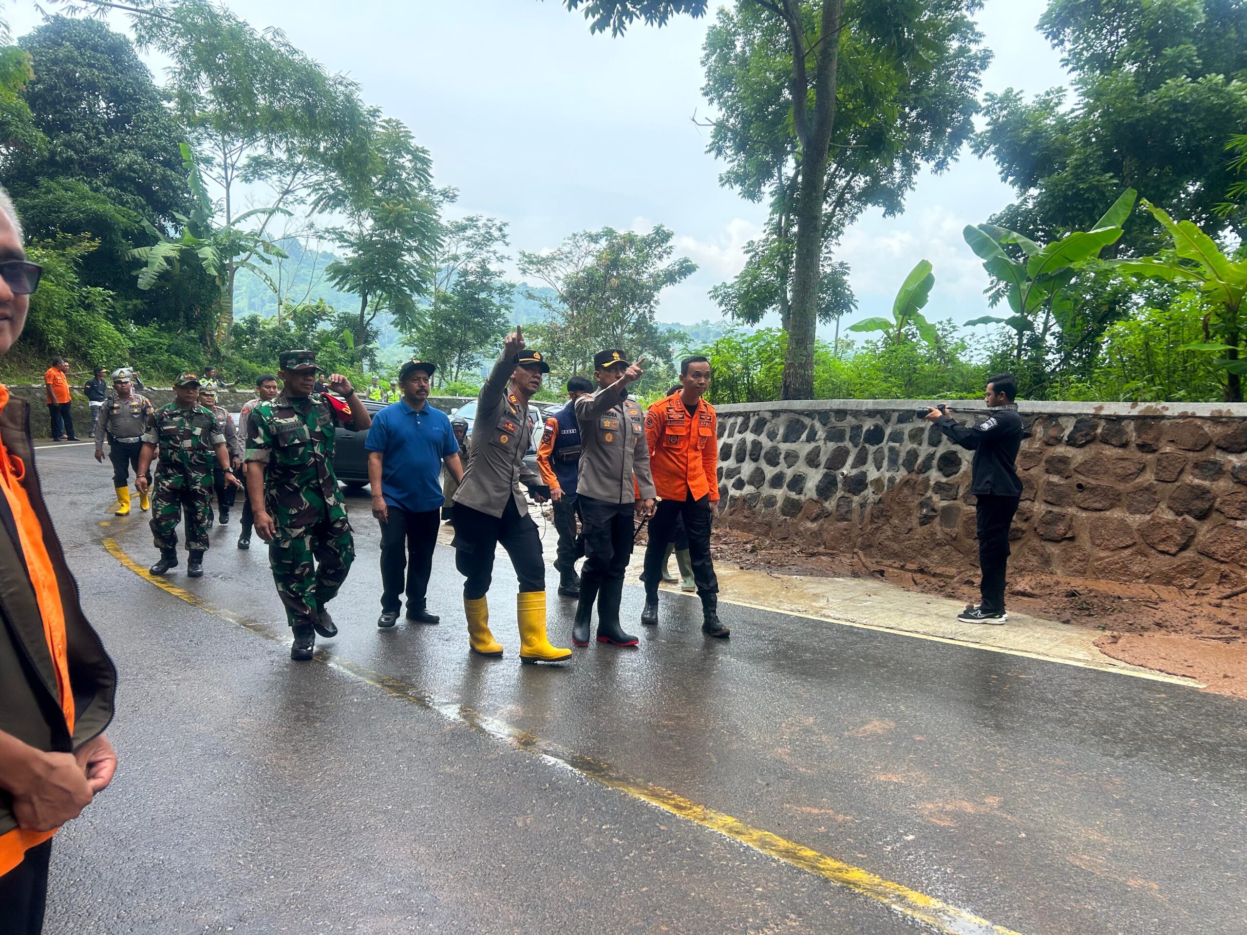 Kapolres Majalengka AKBP Indra Novianto Saat Meninjau Lokasi Longsor di Jalur Majalengka – Kuningan