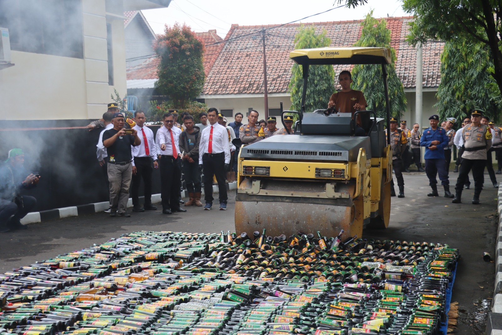 Kapolres Majalengka AKBP Indra Novianto menjelaskan bahwa untuk barang bukti yang dimusnahkan sebanyak 4445 botol miras berbagai jenis, 1092 Botol miras Jenis Ciu dan 1000 Sachet Jamu merupakan hasil razia selama hampir Satu Bulan, sejak Pebruari 2025 hingga Maret 2025.