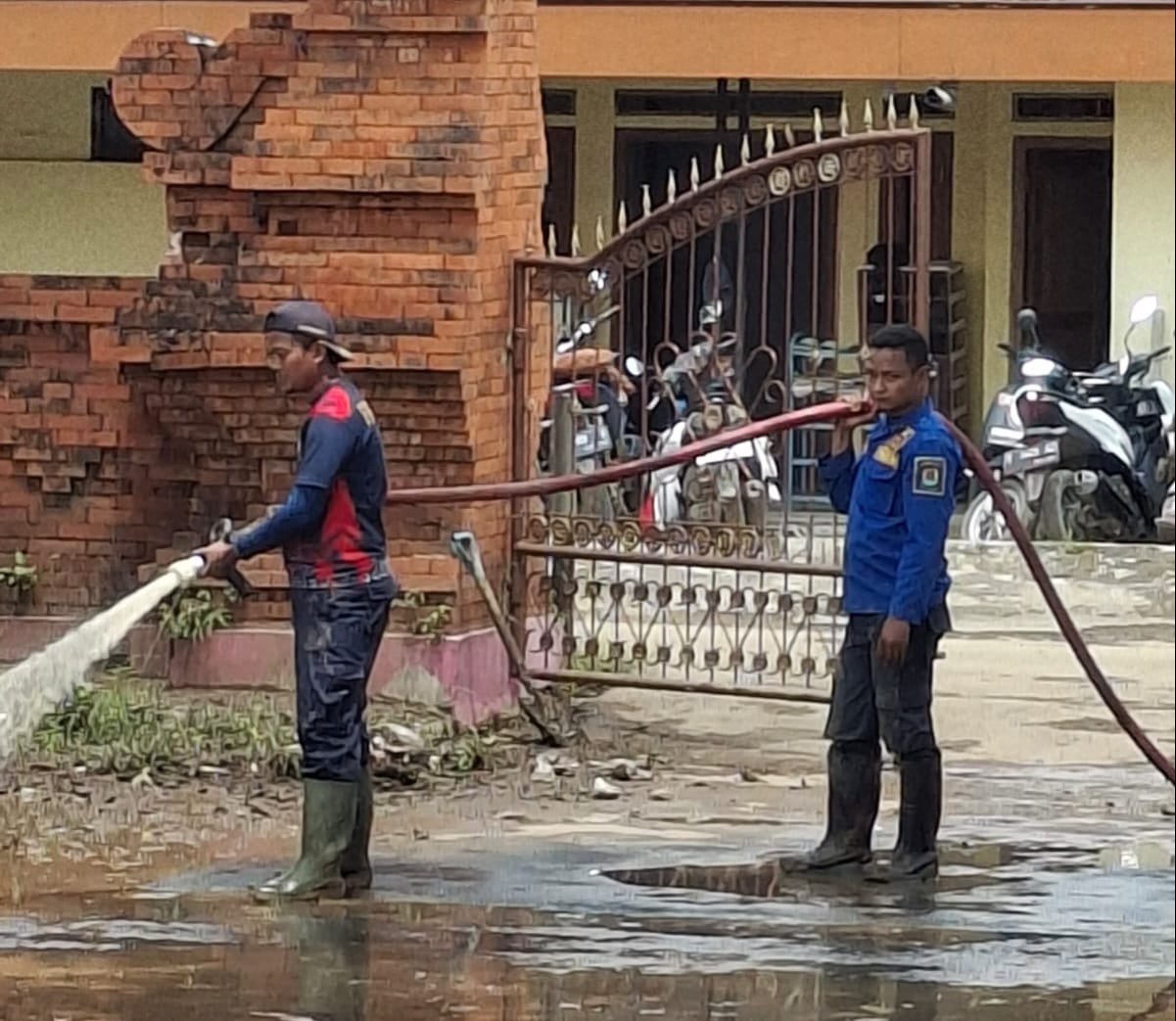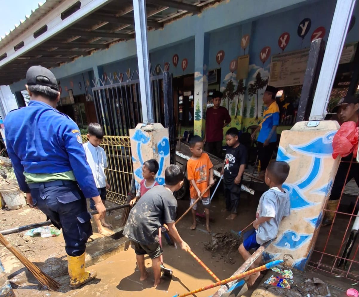 Pasca Banjir, Tim Damkar Kabupaten Cirebon Gelar Aksi Bersih-Bersih