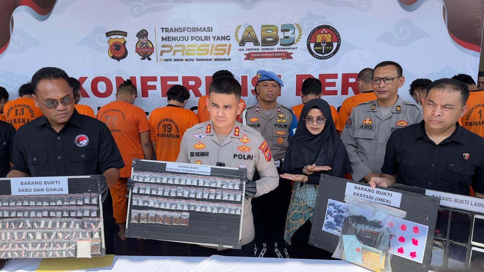 Kapolres Cirebon Kota, AKBP Eko Iskandar, mengungkapkan bahwa para tersangka terlibat dalam peredaran narkotika jenis sabu, ekstasi, ganja, tembakau sintetis, serta obat keras terbatas tanpa izin edar.